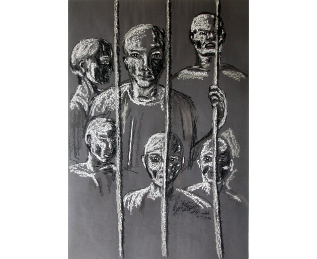 Drawing persons is as fascinating as drawing portraits. Here a few paintings all made with chalk or colored chalk on colored or grey cardboard. The formats are 70 cm x 100 cm.