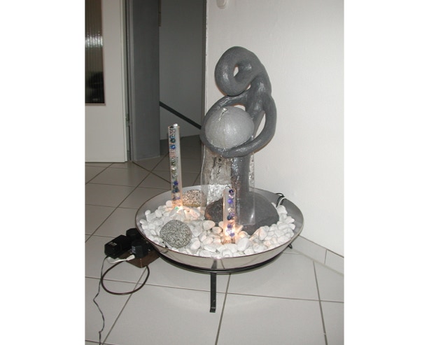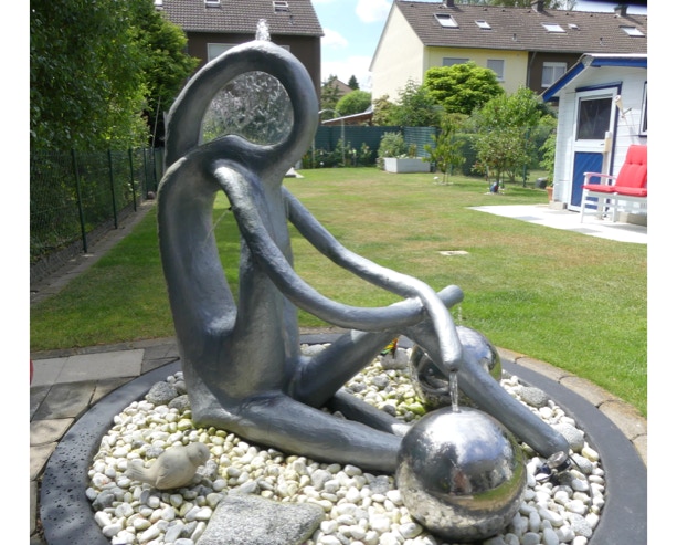 Rippling water driven by the action of gravity along stones or figures or sculptures makes a wonderful sound inviting to let one thoughts flowing and rippling to.