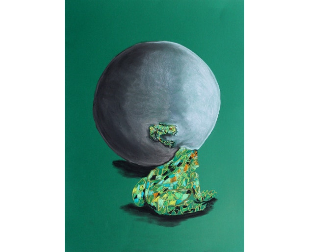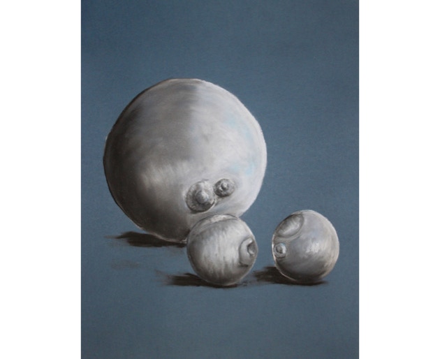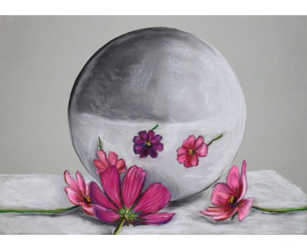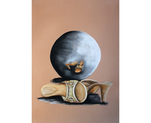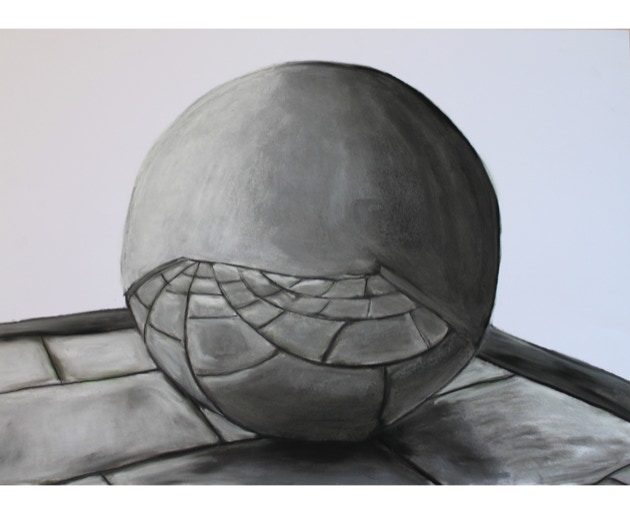 Profane things in front of a sphere or in a sphere. A spherical mirror distorts reality, generates pictures coming from its center, distorts perspectives. Apparently parallel lines become curved. Objects facing a spherical mirror uncover their conflicting being. What do we see: a spherical world, a mirror world, a crystal ball?