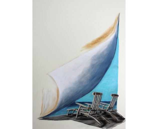 Here a series of paintings all ade with color chalk on colored cardboard; Format 50 x 70 cm.